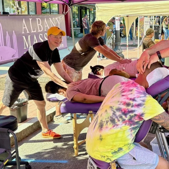 We are a group of highly experienced therapeutic massage professionals conveniently located in Albany, New York, in the Pine Hills neighborhood. We first opened our doors back in 1999, and have been serving our community for more than 26 years! Our mission is to continue to provide the Capital District with the latest in clinically proven therapies to aid in the treatment of muscular tension and pain, assist in the recovery and prevention of athletic injury, help alleviate prenatal discomfort, and to provide general relaxation and stress relief to our community! We aim to accomplish this by maintaining a dynamic staff of highly trained New York State Licensed Massage Therapists and other healthcare and fitness professionals. We have recently moved into a big, beautiful office located at the corner of North Allen and Western Avenue, where Madison and Western merge. We are right next door to the Pine Hills Library. Our fun and talented team of bodyworkers are regularly learning about new treatments via continuing education, and we are frequently expanding our service list to include the latest and most effective massage modality options so that we may better serve our growing client base. We offer a variety of services which can be explored on our services page and we will be adding several more very soon!